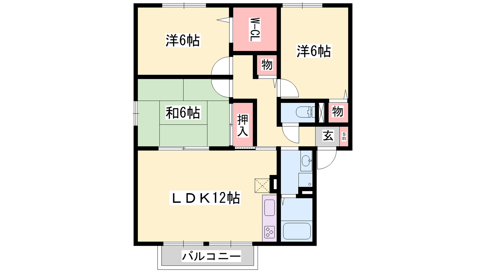 - LDK12帖、洋室6帖、洋室6帖、和室6帖