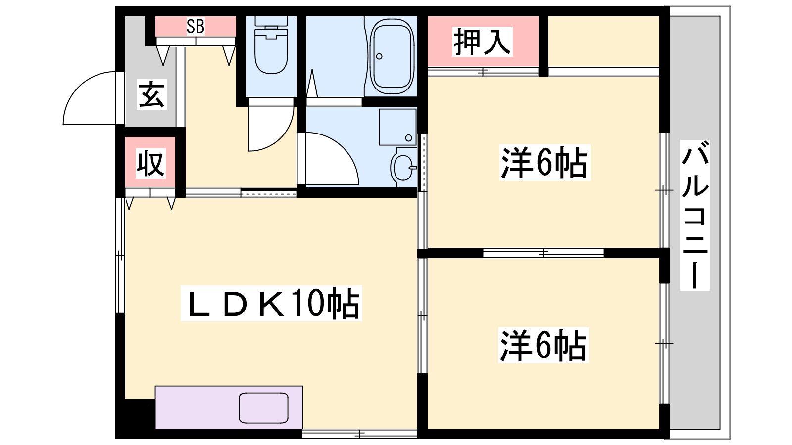 - LDK10帖、洋室6帖、洋室6帖