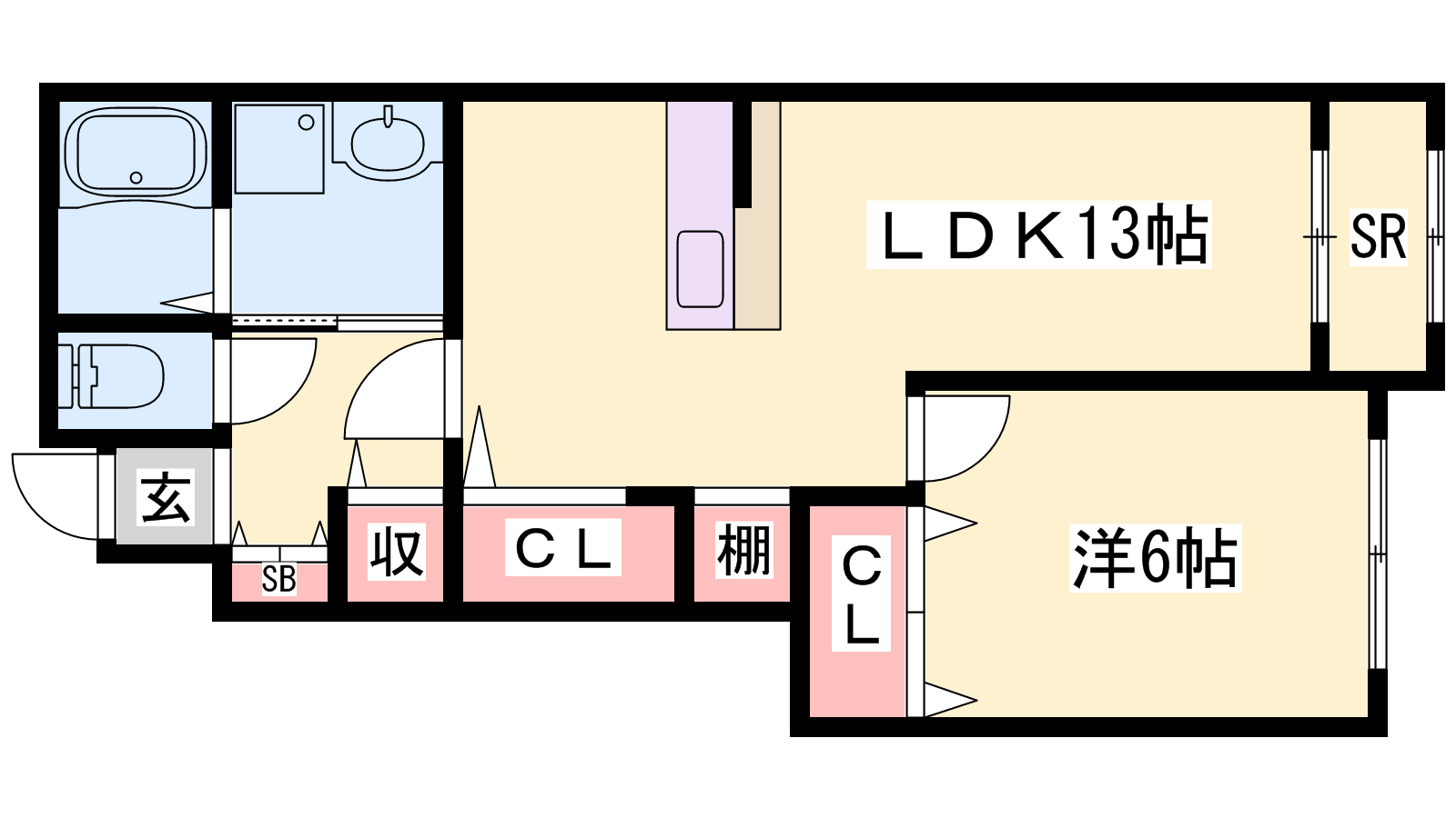 - LDK13帖、洋室6帖