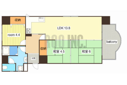 - LDK13.8帖、洋室4.4帖、和室6帖、和室4.5帖