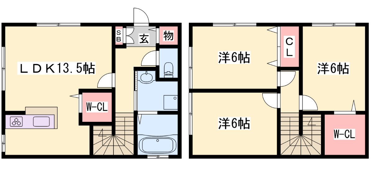 - LDK13.5帖、洋室6帖、洋室6帖、洋室6帖