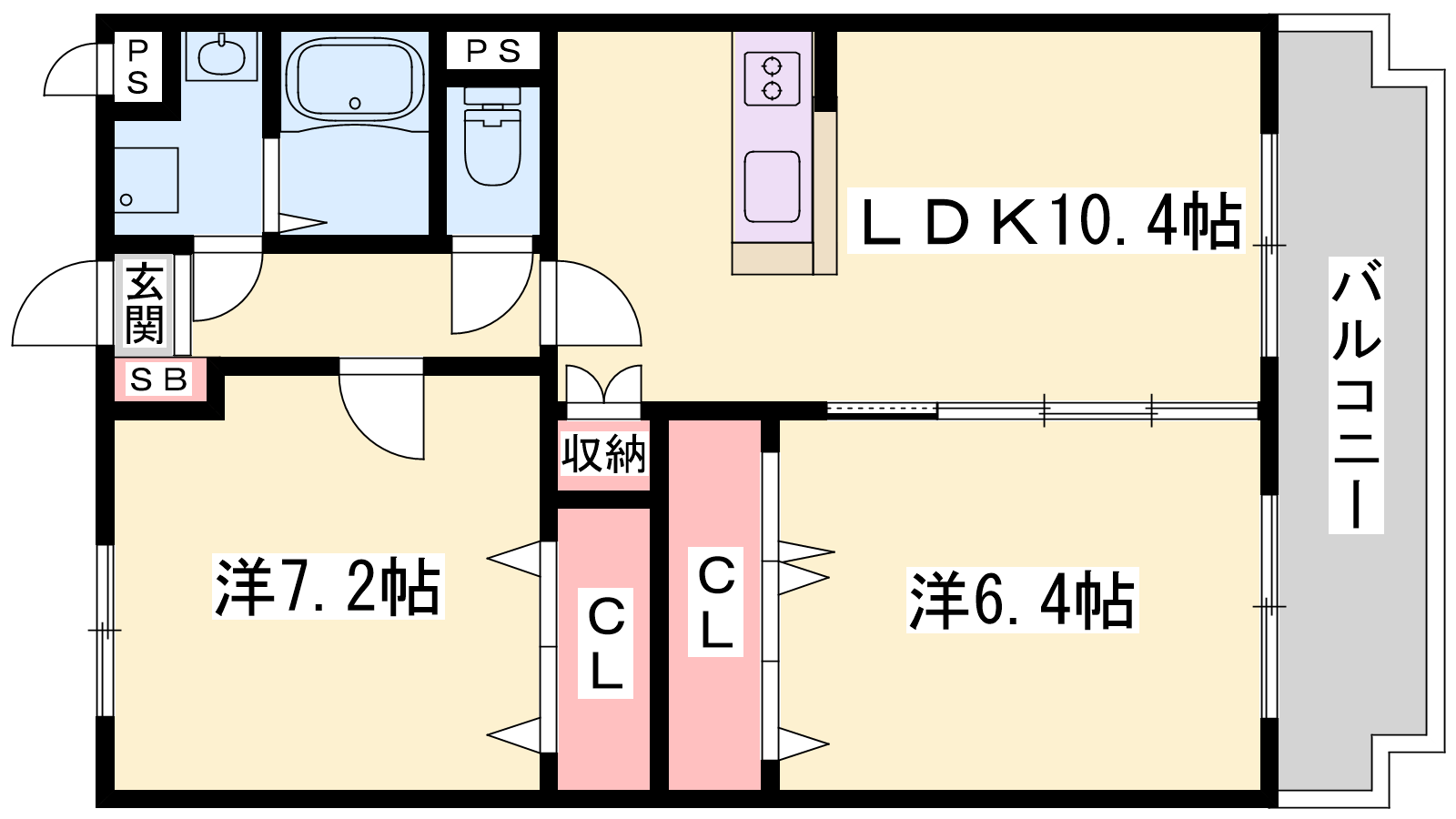 - LDK10.4帖、洋室7.2帖、洋室6.4帖