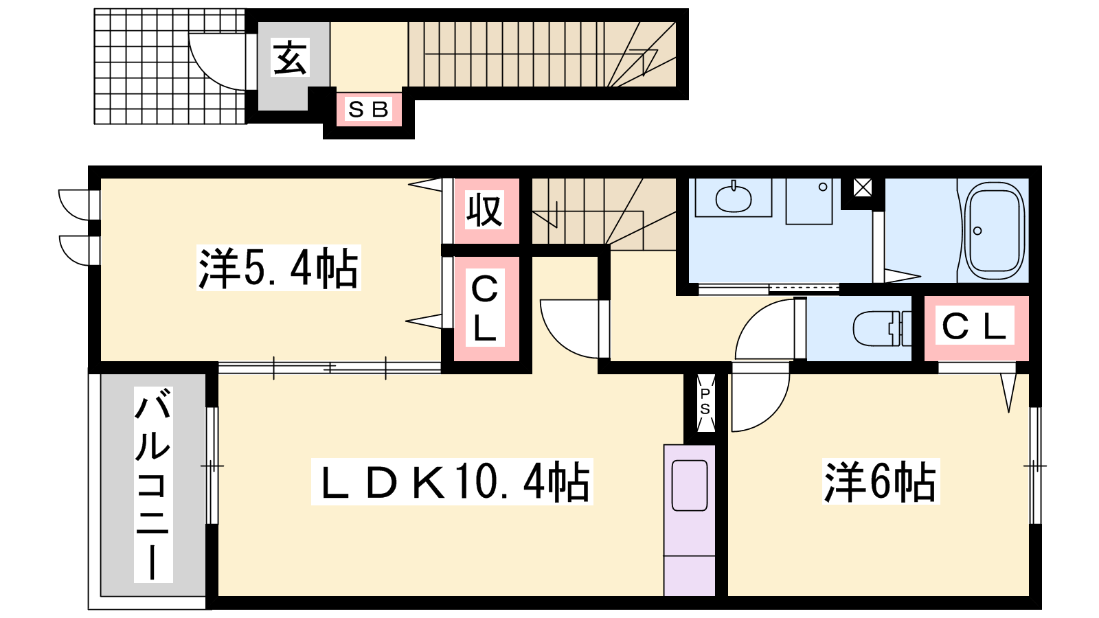 - LDK10.4帖、洋室5.4帖、洋室6帖