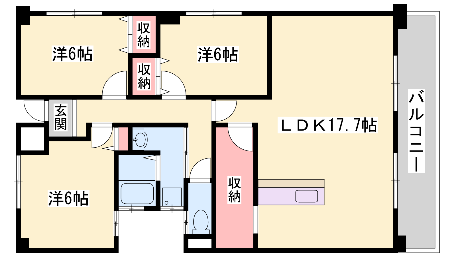 - LDK17.7帖、洋室6帖、洋室6帖、洋室6帖