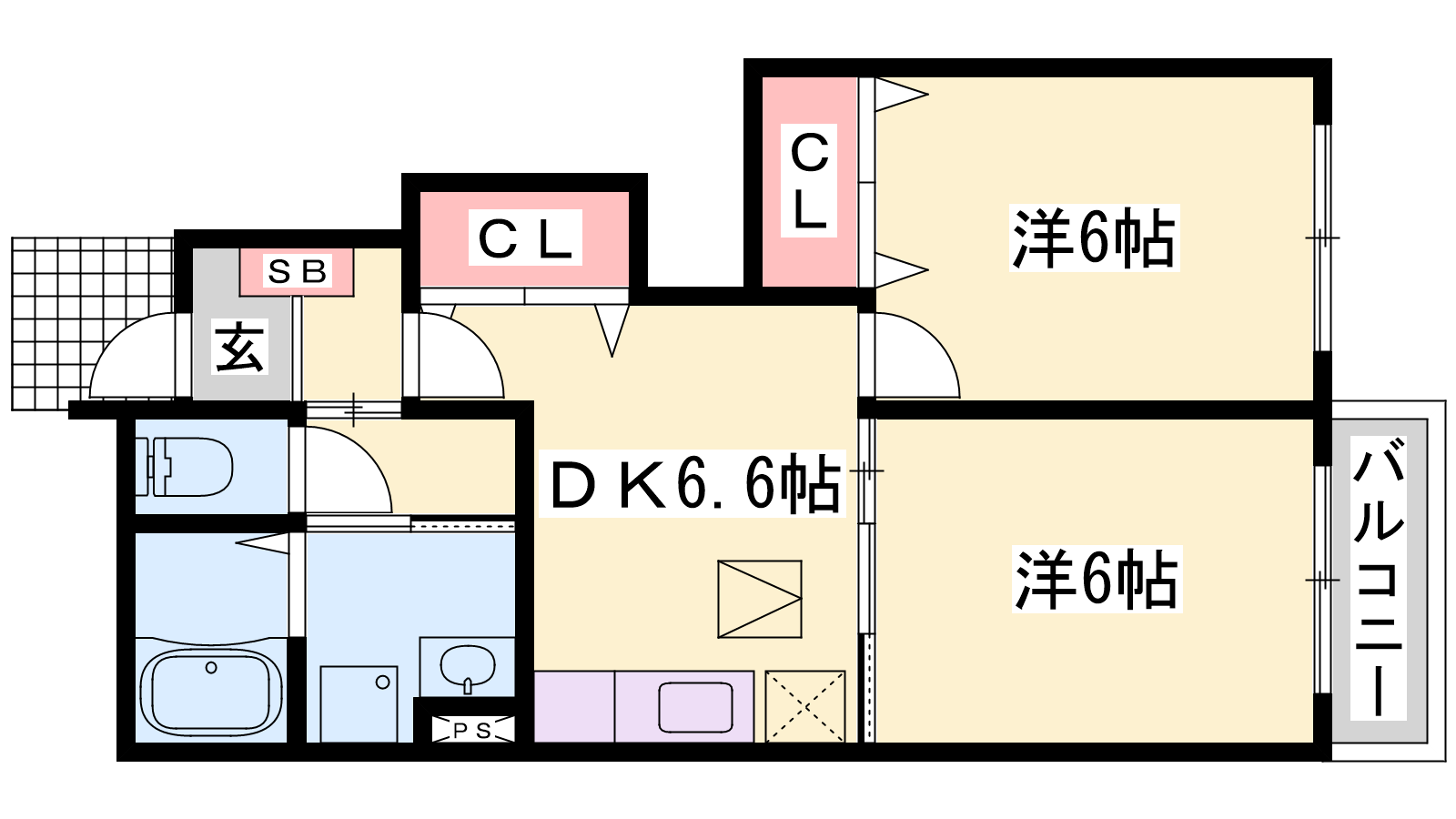- DK6.6帖、洋室6帖、洋室6帖