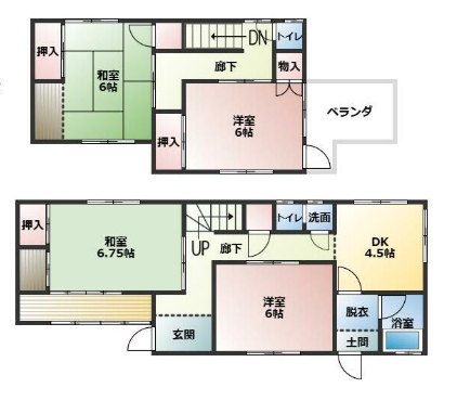 - DK4.5帖、洋室6帖、洋室6.75帖、和室6帖、洋室6帖