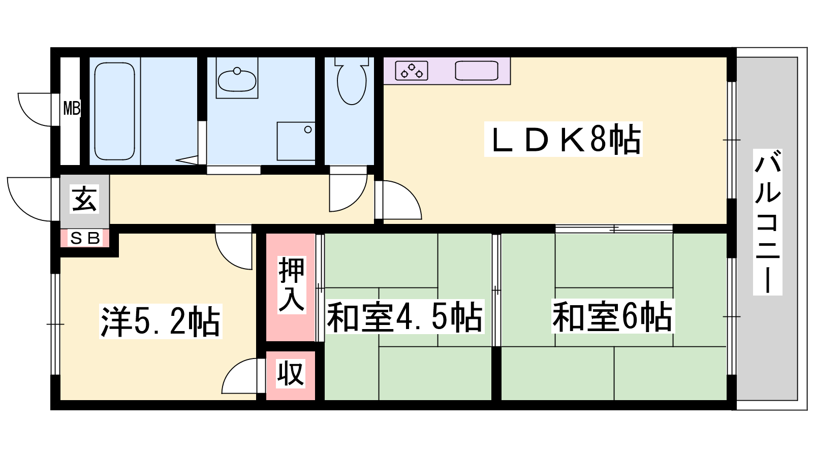 - LDK8帖、洋室4.2帖、和室6帖、和室4.5帖