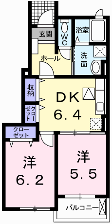 - DK6.4帖、洋室6.2帖、洋室5.5帖
