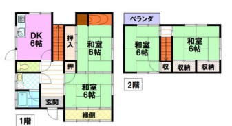 - DK6帖、和室6帖、和室6帖、和室6帖、和室6帖