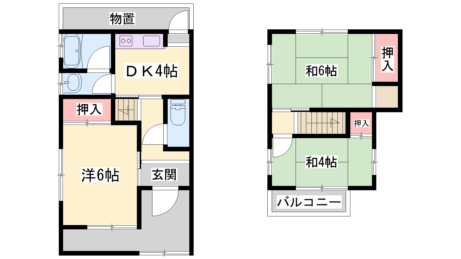 - DK4帖、洋室6帖、和室6帖、和室4.5帖