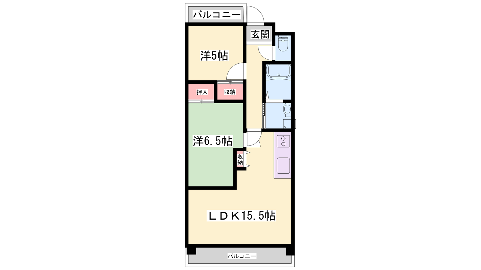 - DK15.5帖、洋室5帖、和室6.5帖