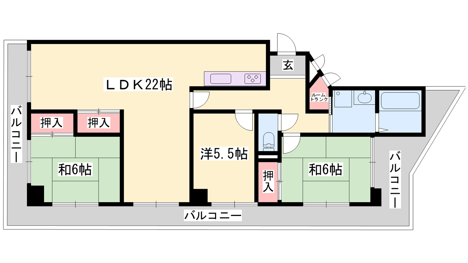 - LDK22帖、洋室5.5帖、和室6帖、和室6帖