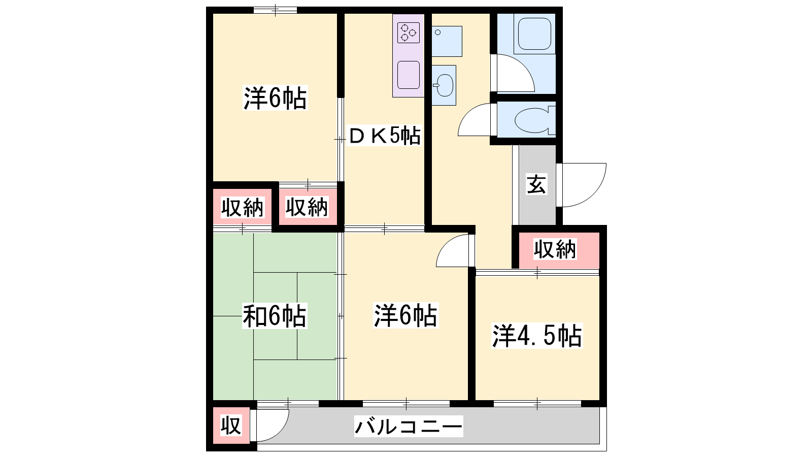 - DK5帖、洋室6帖、洋室6帖、和室6帖、洋室4.5帖