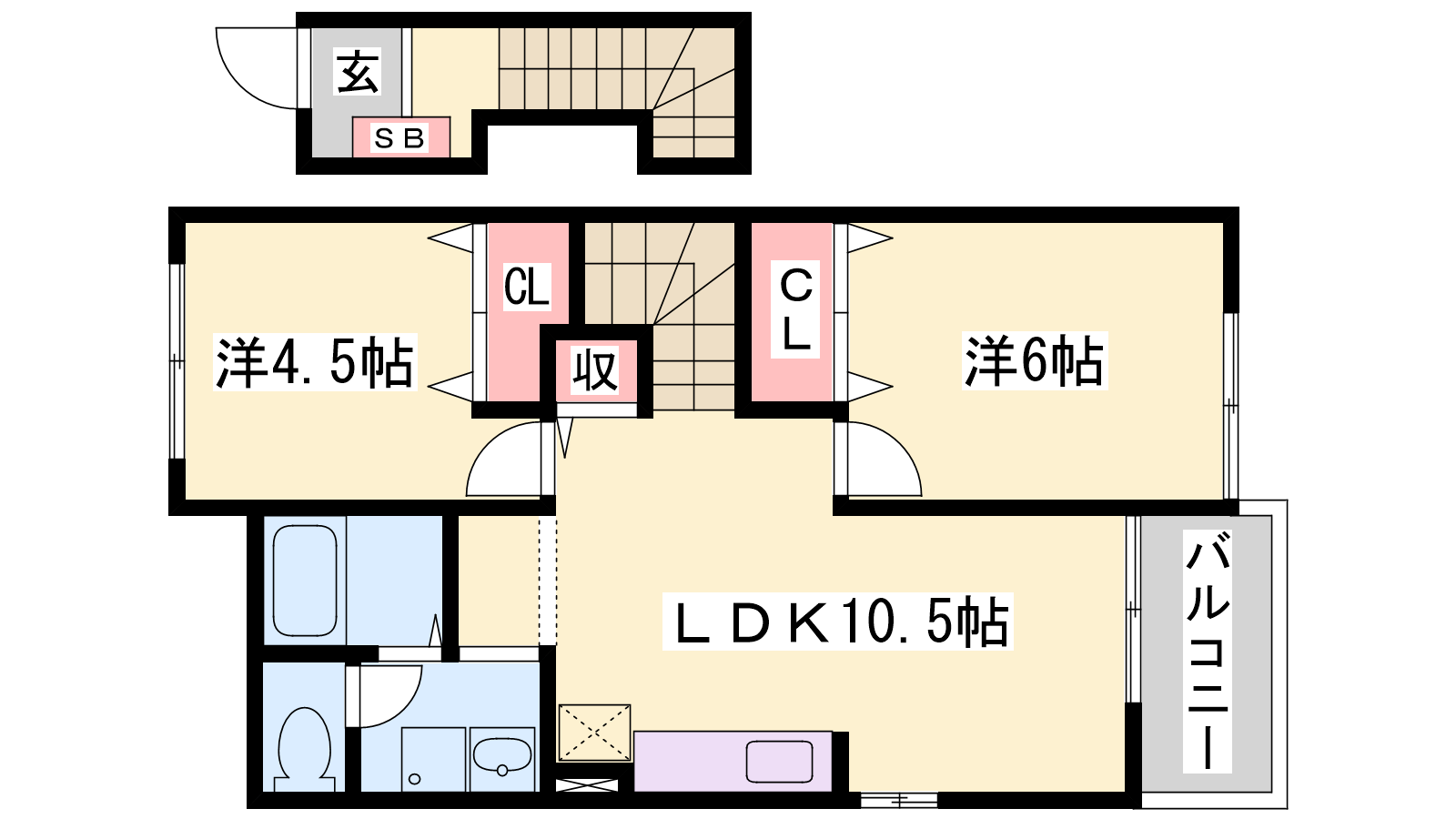 - LDK10.5帖、洋室6帖、洋室4.5帖