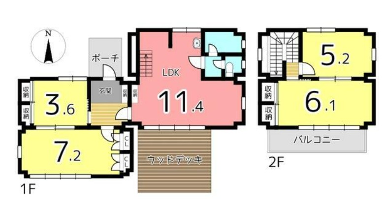 - LDK11.4帖、洋室7.2帖、洋室6.1帖、洋室5.2帖、洋室3.6帖