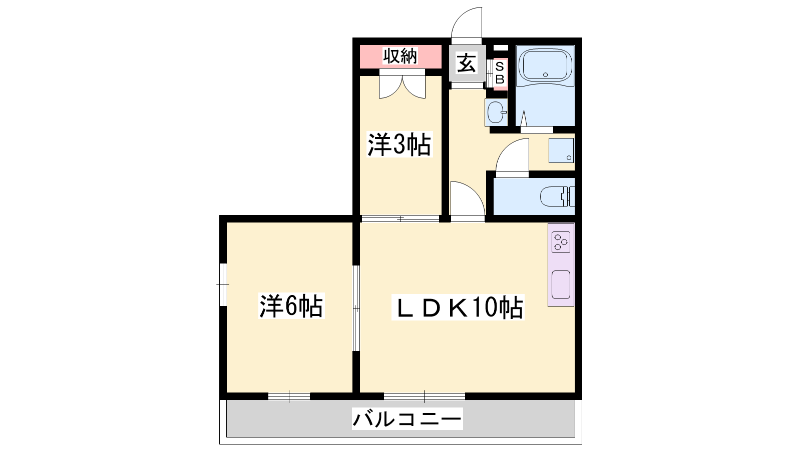 - LDK10帖、洋室6帖、S3帖