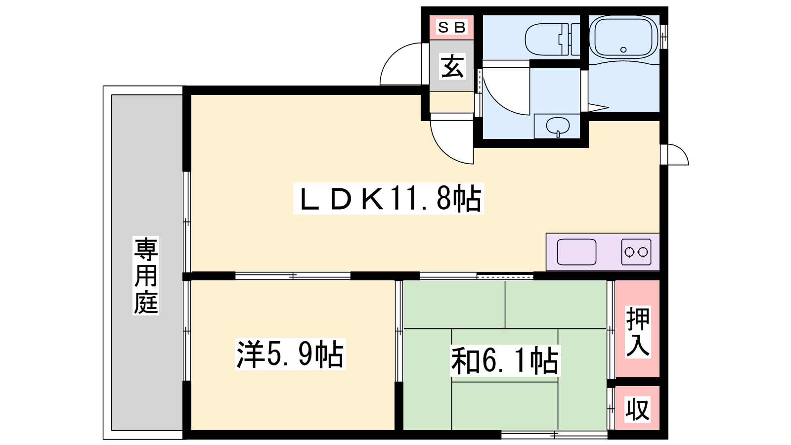 - LDK11.8帖、洋室5.9帖、和室6.1帖