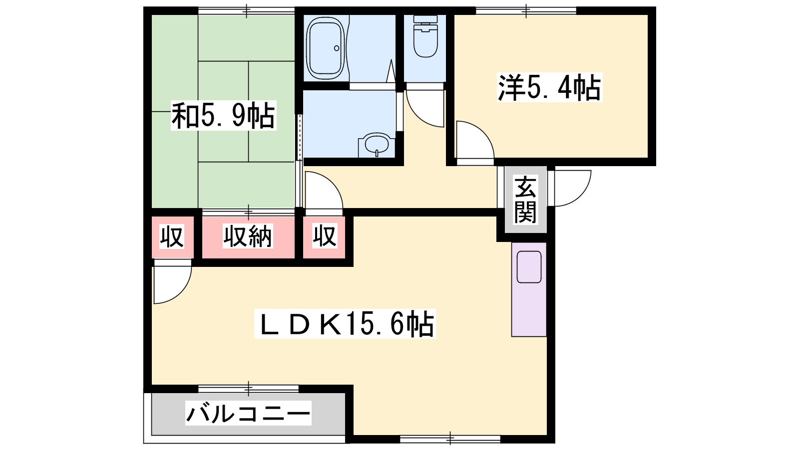 - LDK15.6帖、洋室5.4帖、和室5.9帖