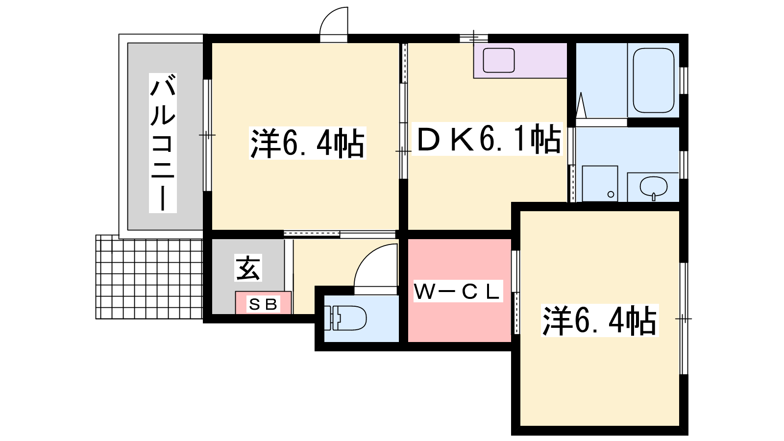 - DK6.1帖、洋室6.4帖、洋室6.4帖
