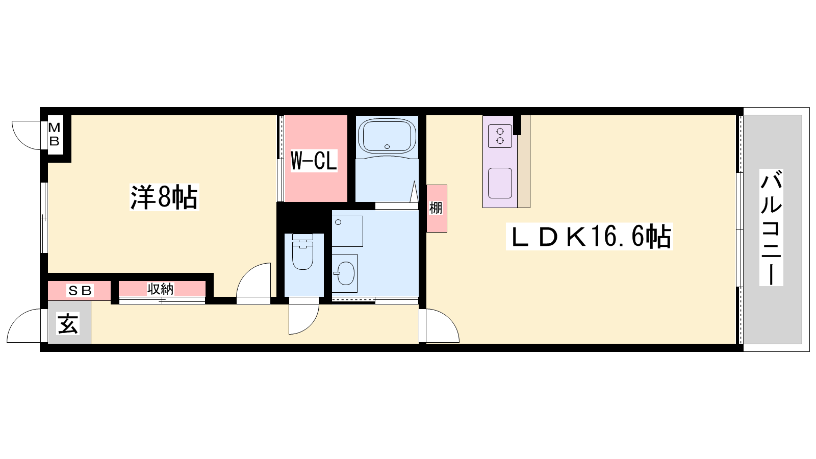 - LDK16.6帖、洋室8帖