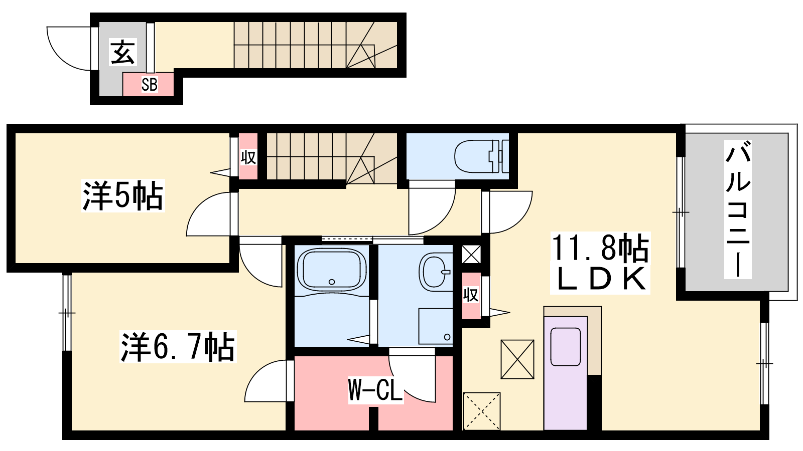- LDK11.8帖、洋室6.7帖、洋室5帖