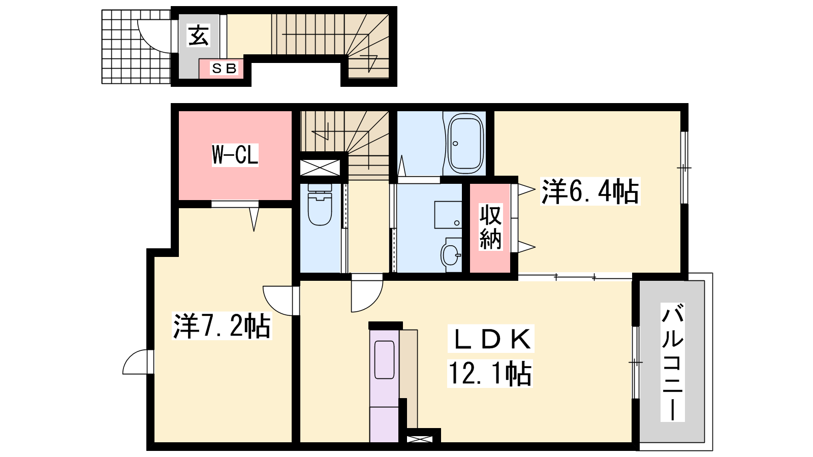 - LDK12.1帖、洋室7.4帖、洋室6.4帖