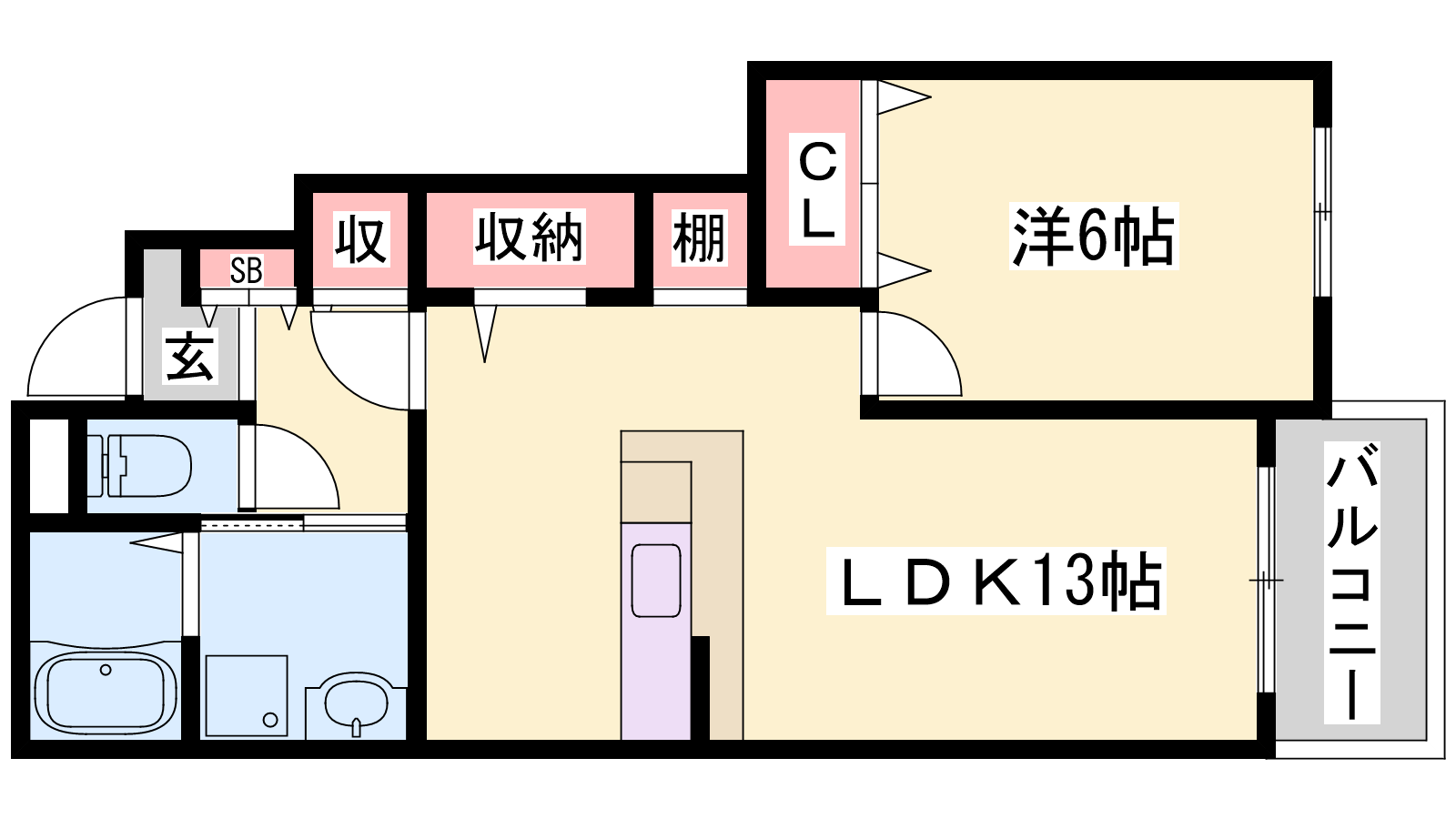 - LDK13帖、洋室6帖