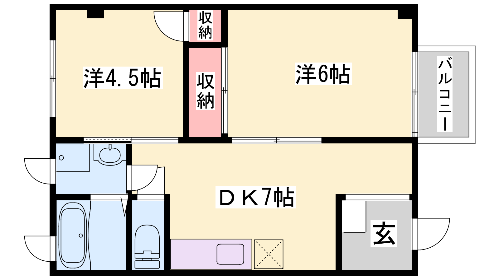 - DK7帖、洋室4.5帖、洋室6帖