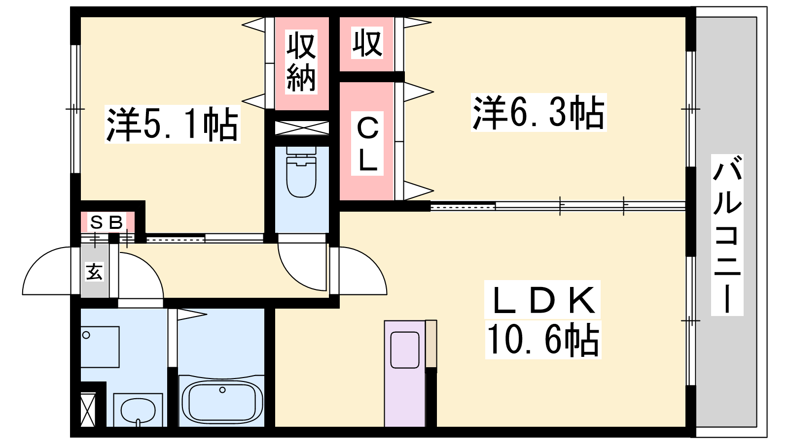 - LDK10.6帖、洋室6.3帖、洋室5.1帖