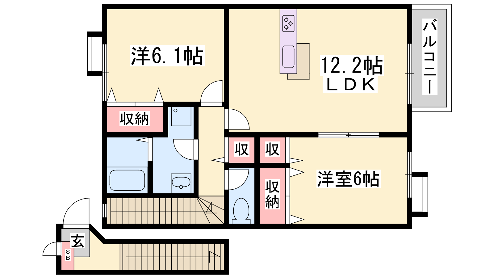 - LDK12.2帖、洋室6.1帖、洋室6帖