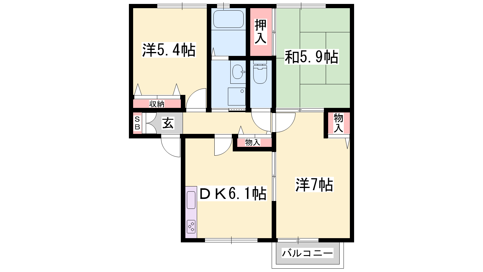 - DK6.1帖、洋室7帖、洋室5.4帖、和室5.9帖