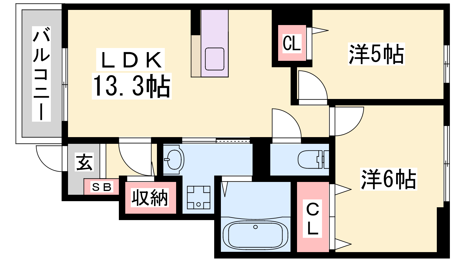- LDK13.3帖、洋室6帖、洋室5帖