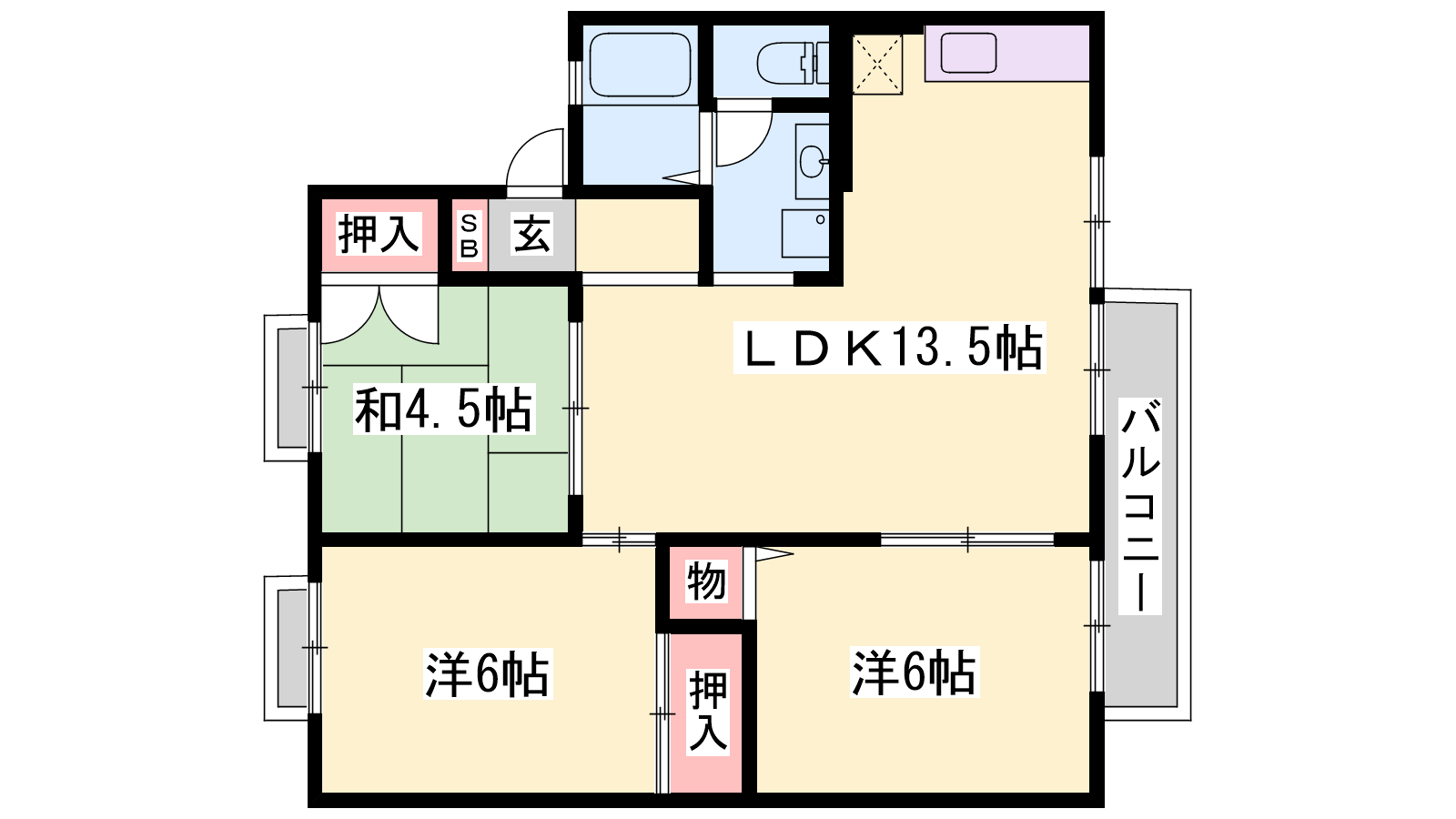 - LDK13.5帖、洋室6帖、和室4.5帖、洋室6帖