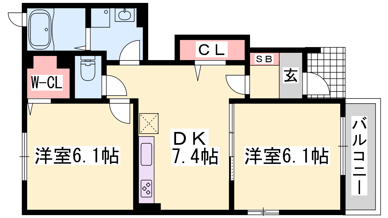 - DK7.4帖、洋室6.1帖、洋室6.1帖