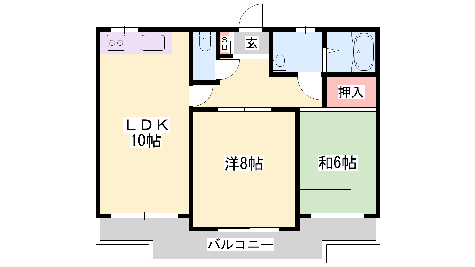 - LDK10帖、洋室8帖、和室6帖