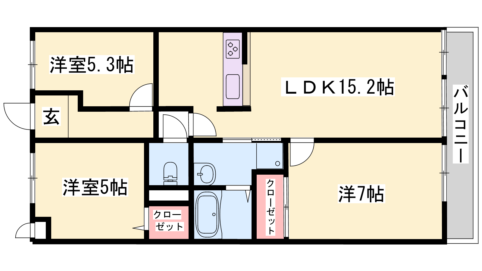 - LDK15.2帖、洋室7帖、洋室5.3帖、洋室5帖