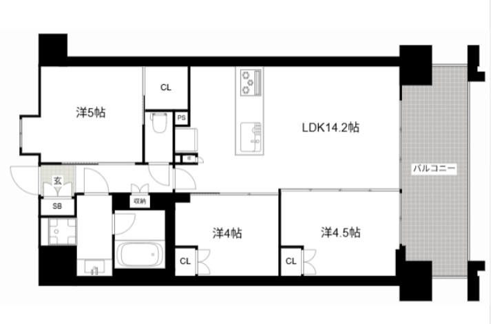 - LDK14.2帖、洋室5帖、洋室4.5帖、洋室4帖
