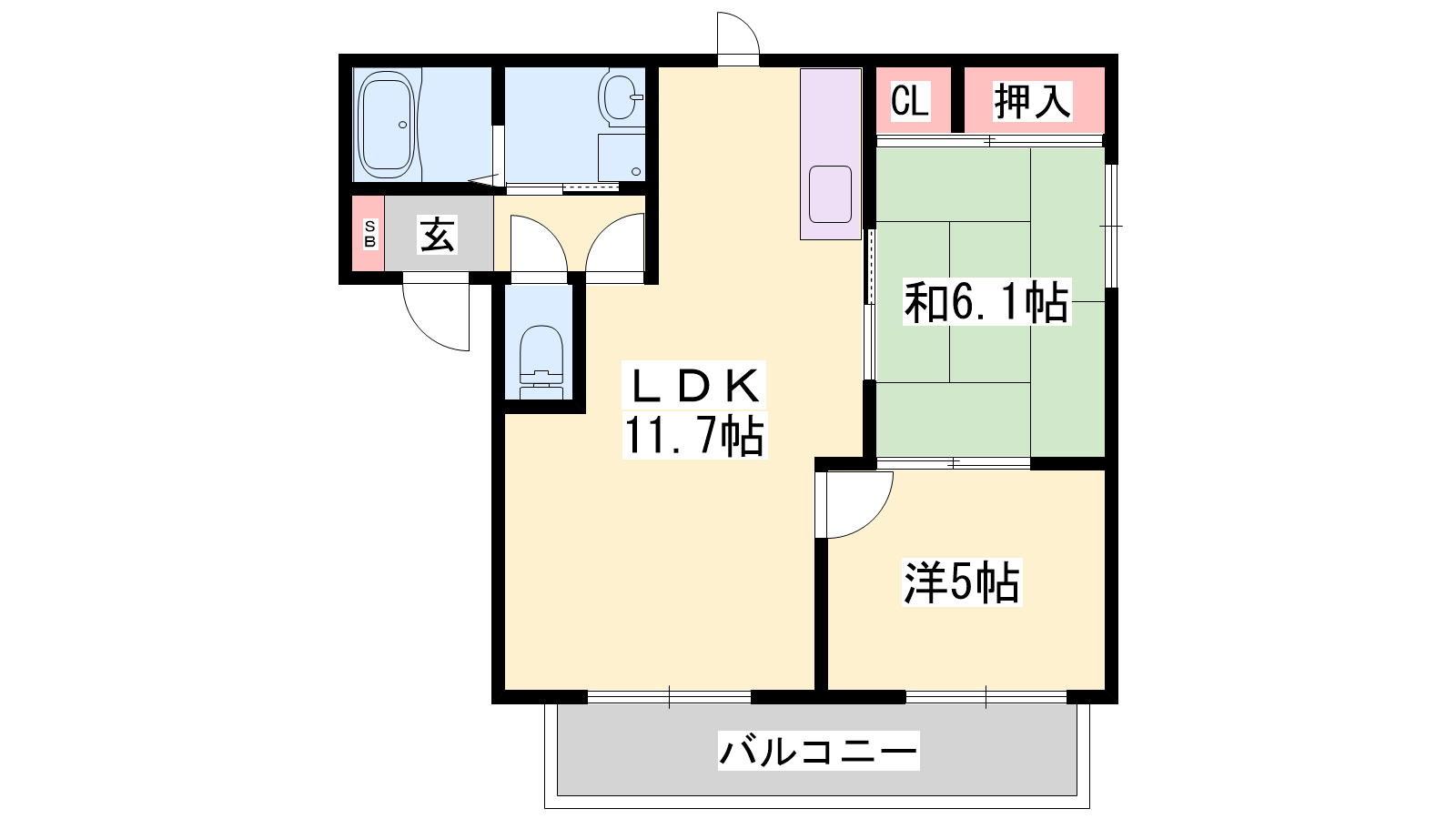 - LDK11.7帖、洋室5帖、和室6.1帖