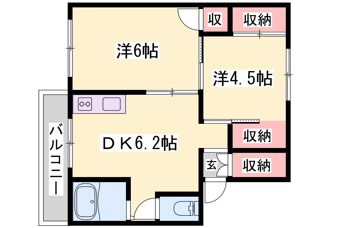 - DK6.2帖、洋室6帖、洋室4.5帖