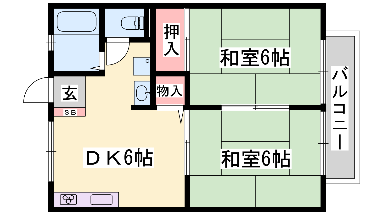 - DK6帖、和室6帖、和室6帖