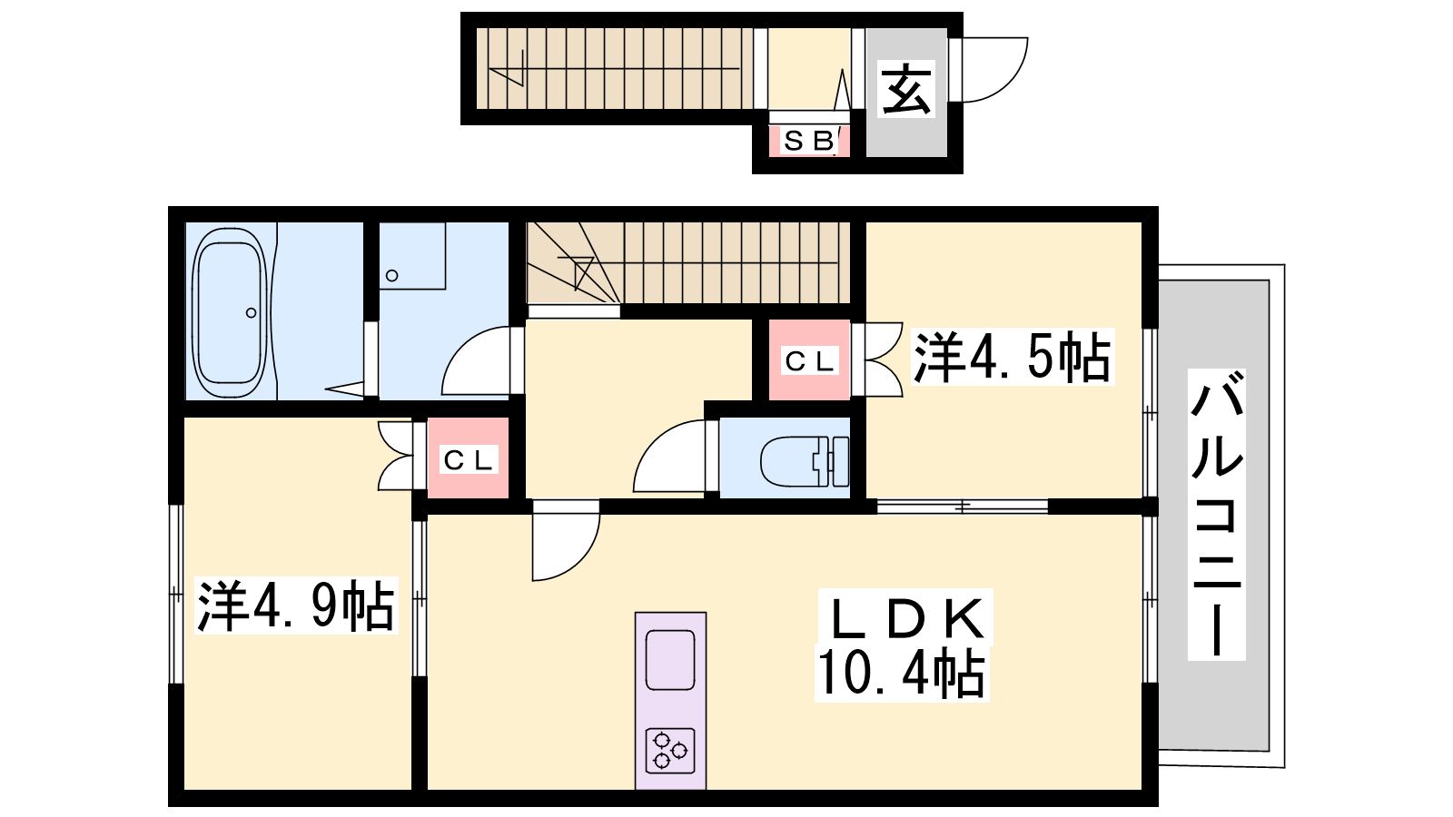 - LDK10.4帖、洋室4.9帖、洋室4.5帖