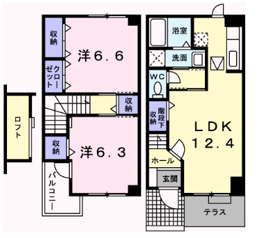 - LDK12.4帖、洋室6.6帖、洋室6.3帖