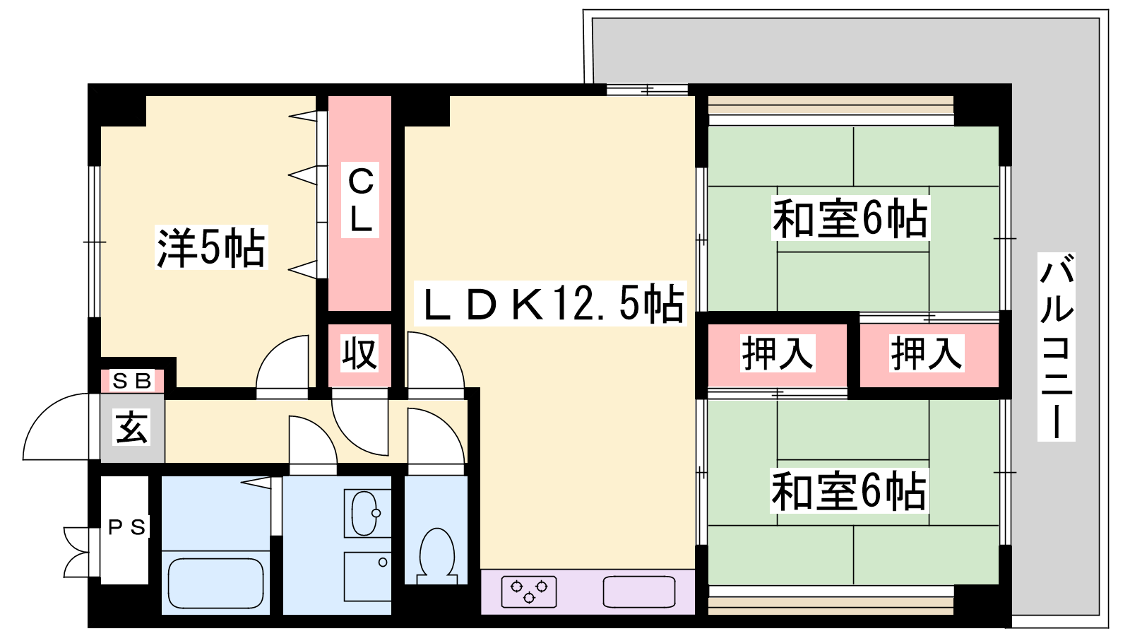 - LDK12.5帖、和室6帖、和室6帖、洋室5帖