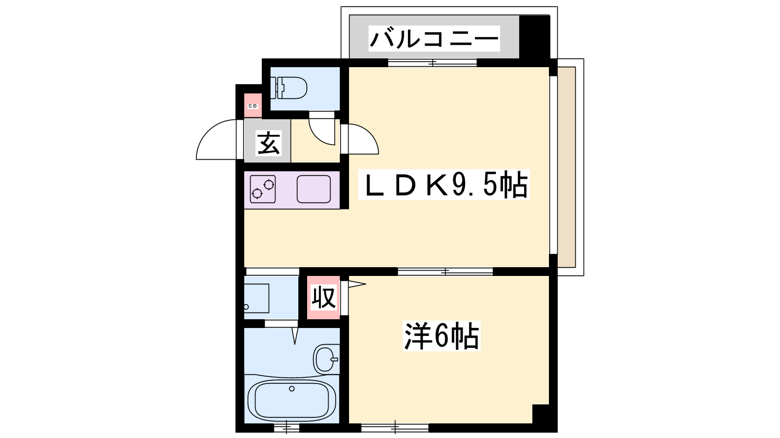 - LDK9.5帖、洋室6帖