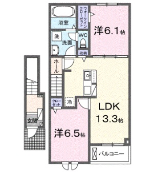 - LDK13.3帖、洋室6.1帖、洋室6.5帖