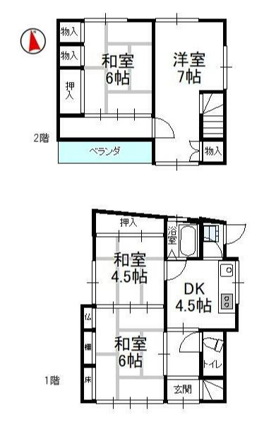 - DK4.5帖、洋室7帖、和室6帖、和室6帖、和室4.5帖