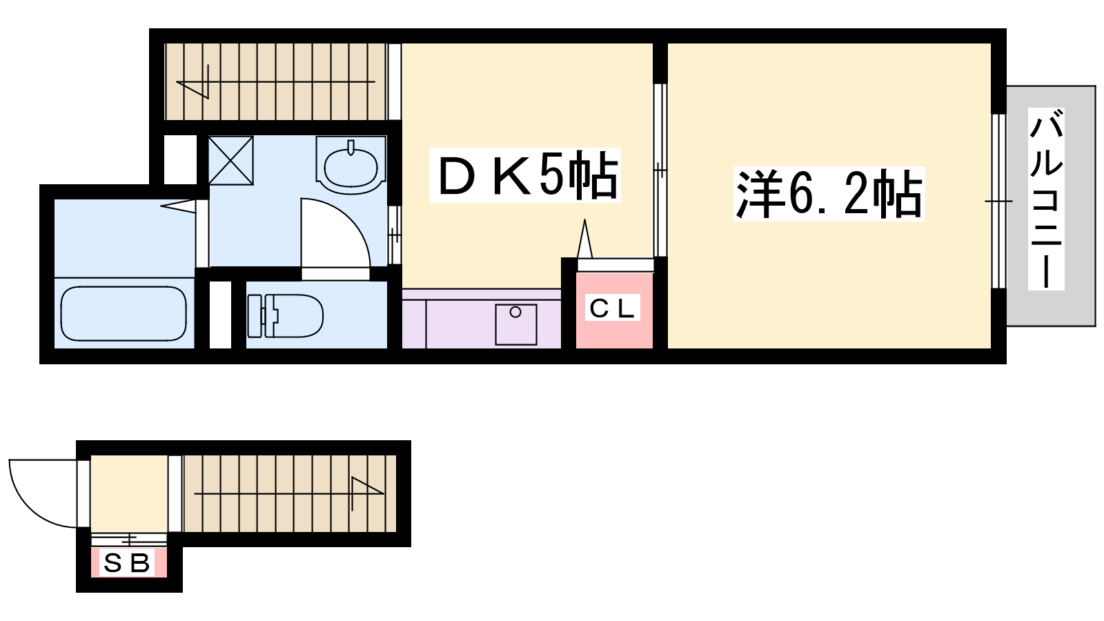 - DK5帖、洋室6.2帖