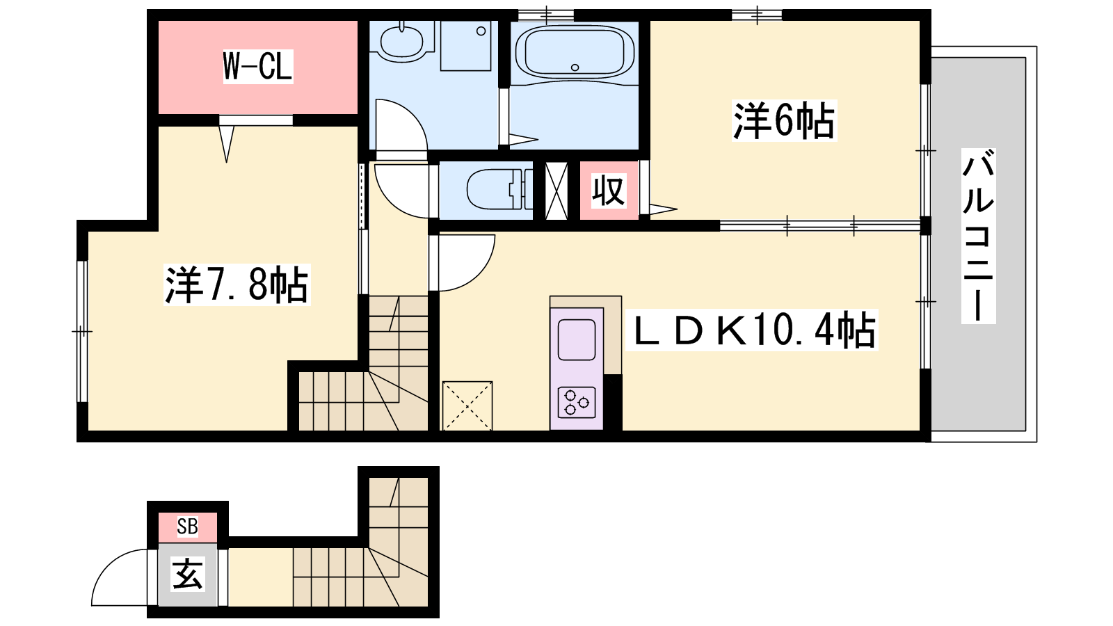 - LDK10.4帖、洋室6帖、洋室7.8帖