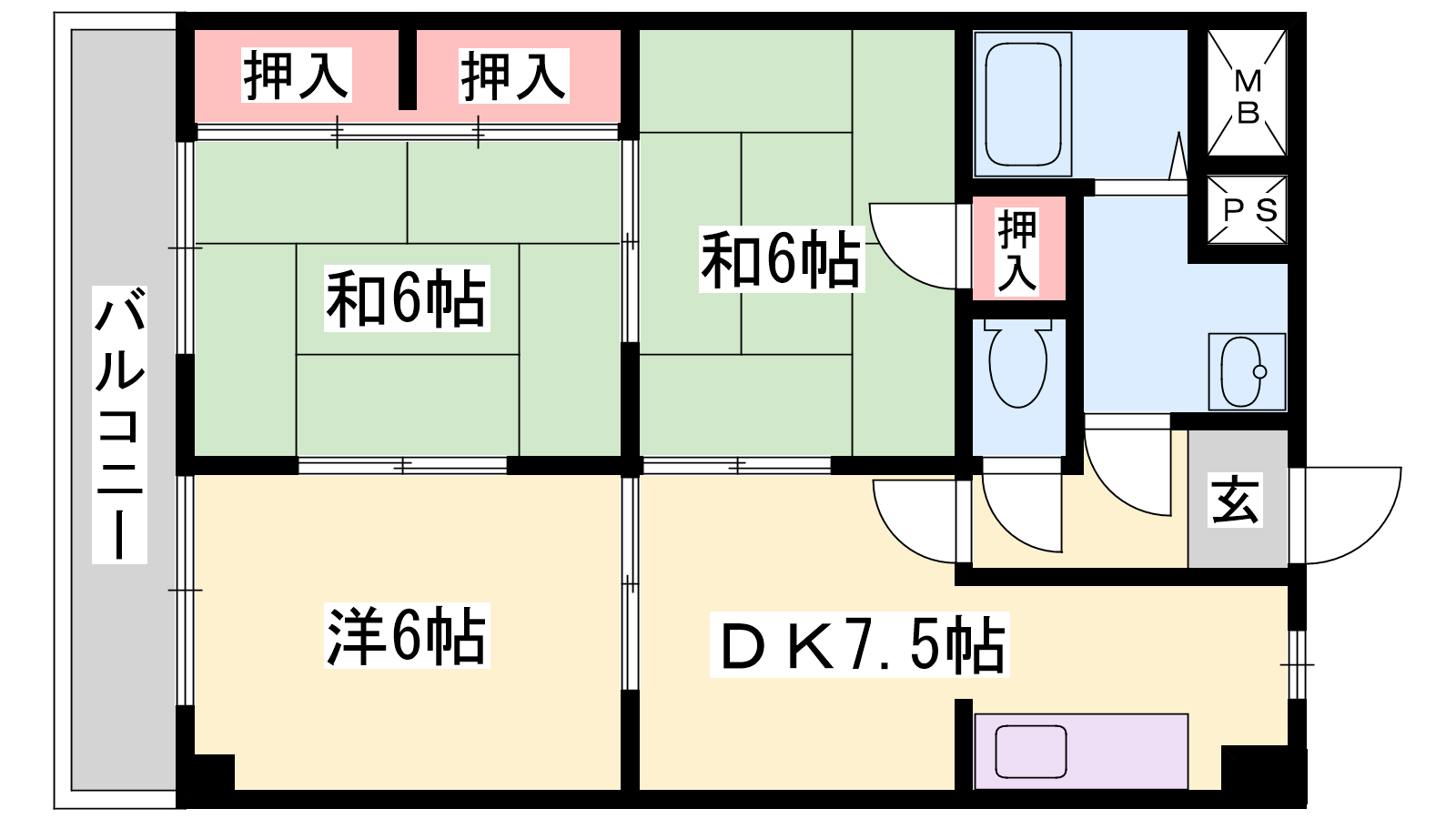 - DK7.5帖、洋室6帖、和室6帖、和室6帖