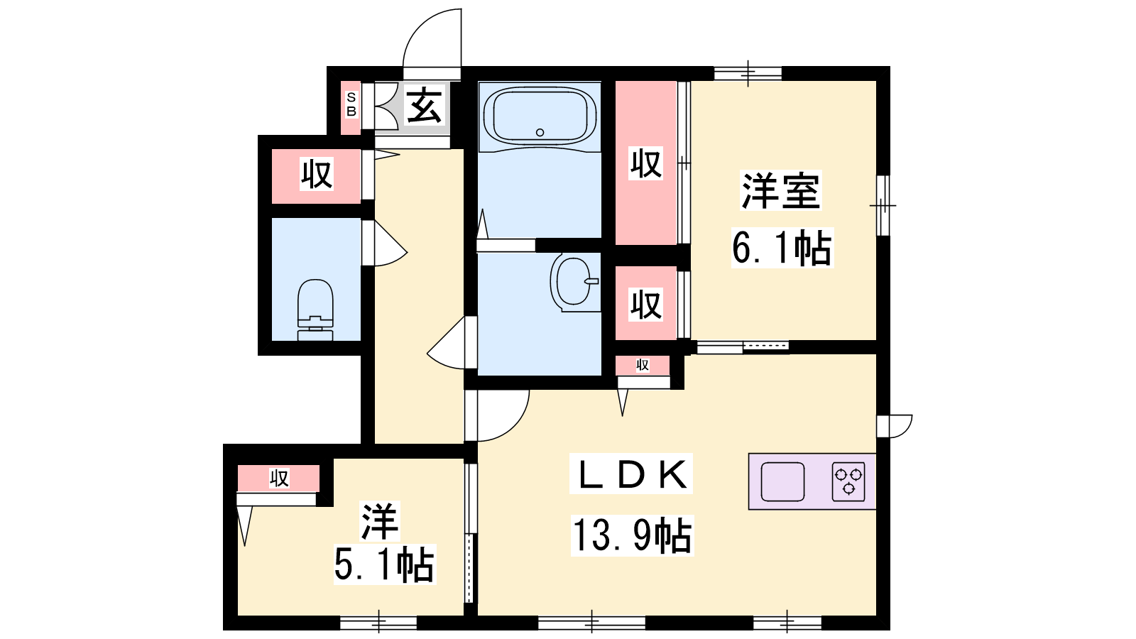 - LDK13.9帖、洋室6.1帖、洋室5.1帖